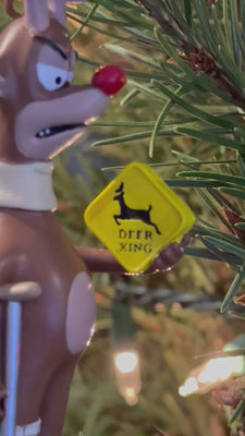 Funny Deer Crossing Injured Reindeer Christmas Ornament