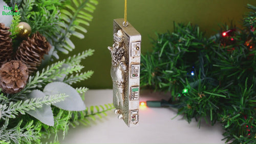 This fun Santa ornament is a parody of the Star Wars movies. Santa won't be making it to deliver his ornaments this Christmas, he's been frozen in carbonite. This funny ornament is sure to get some laughs this holiday season!