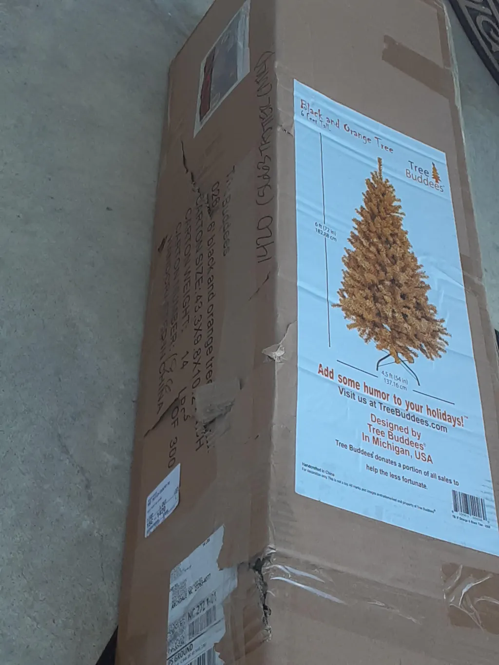 - These Halloween trees are 6 feet tall and roughly 4 feet wide at the bottom. They come in three different sections that simply slide into one another.