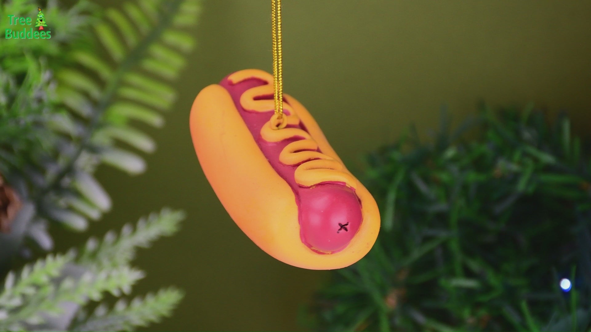Hungry for a Hot Dog? This fun food themed ornament is of a hotdog with mustard on it.